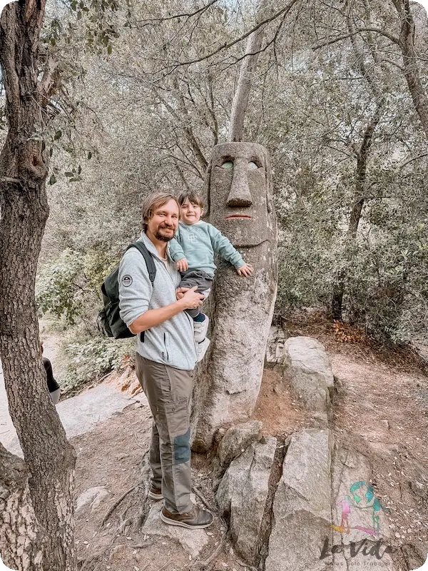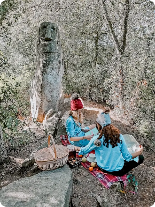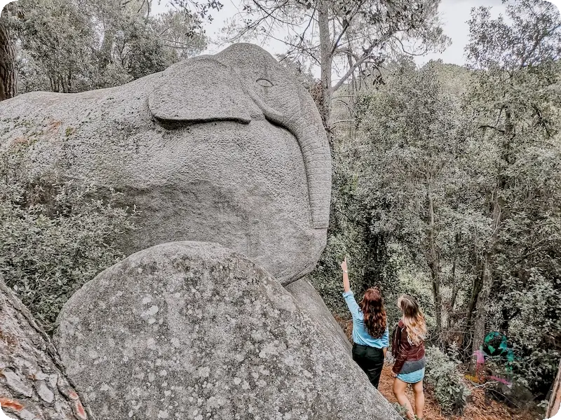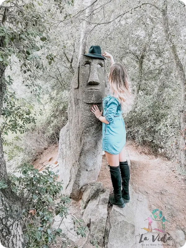 Visitamos el Bosque Encantado de Orrius, situado a 30 minutos de Barcelona, en el Maresme. Te contamos como encontrar las figuras del elefante, indio y el moai.