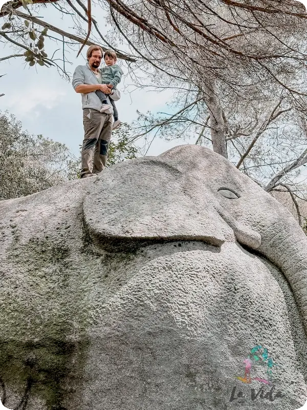 Para no liaros con muchas indicaciones lo mejor para llegar a este lugar es poner el el google maps: Bosc Mágic – Elefant de Pedra.