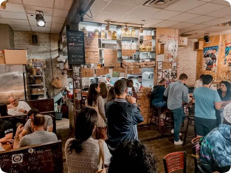 Al ser servicio de barra, no es obligatorio el 20% como en los restaurantes, pero en Nueva York lo habitual es dejar un 10-15% o el cambio en el bote de propinas del mostrador.