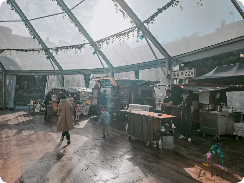 Aquí hay un gran escenario y varias food trucks, que son un buen sitio para comer algo durante nuestra visita.