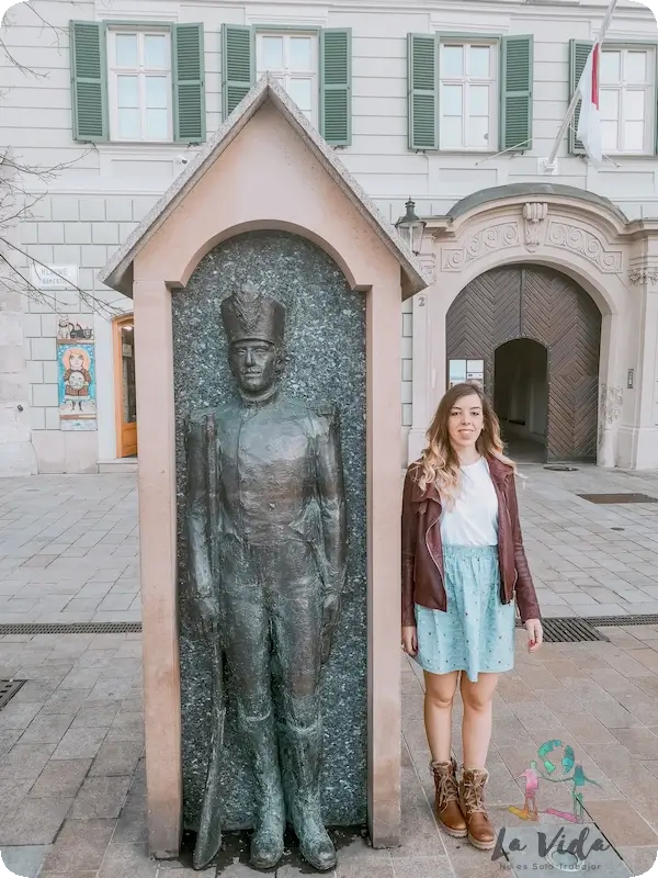 El soldado francés, vestido a lo Napoleón y el soldado en su garita los encontramos bastante próximos en la plaza principal de la ciudad, de la que os hemos hablado antes, la Hlavné námestie