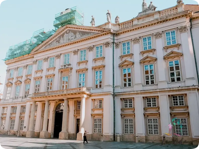 - Palacio Primacial: A pocos pasos de la plaza principal se encuentra este imponente palacio de color rosa pastel, famoso por ser el lugar donde se firmó la Paz de Presburgo tras la batalla de Austerlitz. Su arquitectura neoclásica es, sencillamente, preciosa.