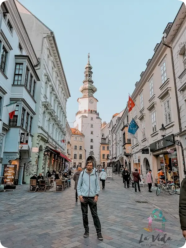 Tras dejar atrás el Danubio, nos adentramos de lleno en el casco antiguo de Bratislava, y es aquí donde realmente reside el encanto de la capital eslovaca. Si tenéis tiempo (no como nosotros, que íbamos con el reloj pegado), os recomendamos encarecidamente que os perdáis por sus callejuelas empedradas. Es una zona perfecta para disfrutar del ambiente, curiosear en sus pequeñas tiendas de artesanía y, por supuesto, dejarse tentar por su gastronomía.