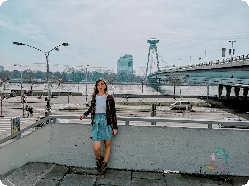 Desde este punto, las vistas son brutales. Tenéis frente a vosotros la inmensidad del Danubio y, presidiendo el paisaje, el inconfundible UFO (el «OVNI» de Bratislava). Se trata de una estructura de diseño futurista que parece sacada de una película de ciencia ficción de los años 70.