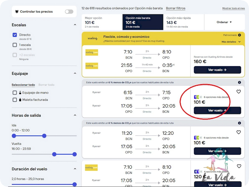 - Viajes entre semana: Si tenéis flexibilidad y podéis viajar de martes a jueves, por ejemplo, los precios bajan considerablemente, pudiendo encontrar auténticos chollos desde 60€ ida y vuelta.
