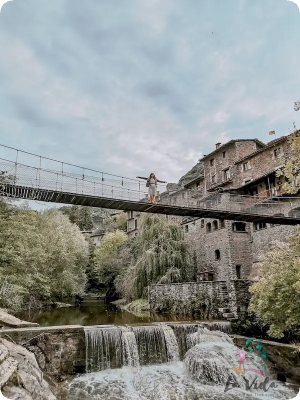 Es mundialmente conocido por ser uno de los pueblos medievales mejor conservados de Catalunya. Su estampa más famosa es el puente colgante de madera y sus casas de piedra de los siglos XVI y XVII que parecen detenidas en el tiempo.