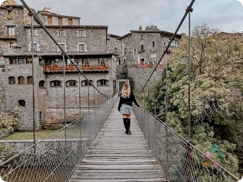 Los imprescindibles son su famoso puente colgante, la Calle del Fossar con su suelo de roca natural, la Plaza Mayor y la Iglesia de Sant Miquel. Si os gusta la naturaleza, no podéis perderos la caminata hasta el Salt de Sallent, una catarata de 90 metros de altura.