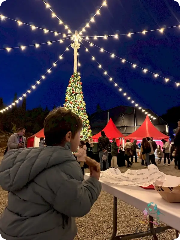 Al salir del recorrido principal, llegas directamente al Christmas Village, una carpa y una plaza navideña que funciona como “la guinda del pastel” de la experiencia.